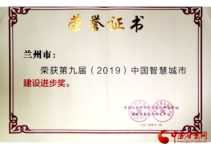 中国甘肃网12月9日讯 (本网记者 赵满同)近日,在2019智慧中国年会上发布了第九届中国智慧城市发展水平评估结果,兰州市荣获“中国智慧城市建设进步奖”和“数据应用领先奖”,智慧城市建设再创佳绩。12月4日,省委常委、兰州市委书记李荣灿对此批示“可喜可贺,再接再厉”。