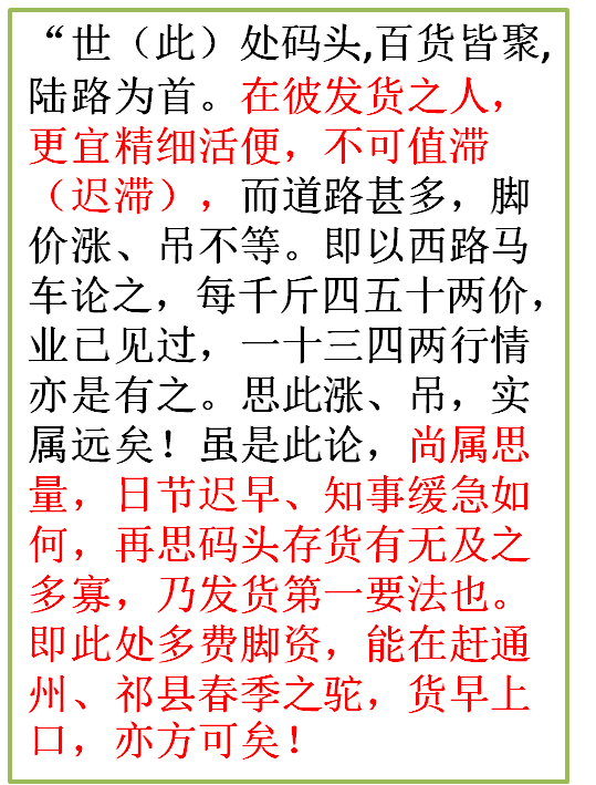 图6:《行商遗要》中叮嘱茶商对运费行情变化如何抉择