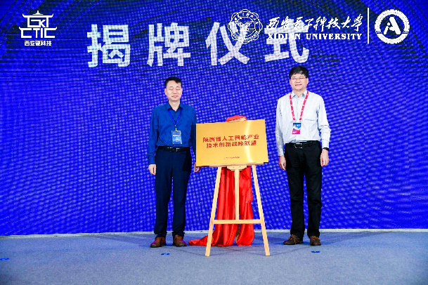 现场举办了“陕西省人工智能产业技术创新战略联盟”揭牌,由陕西省科学技术厅副厅长史高领、西安电子科技大学副校长石光明在现场为联盟揭牌。联盟旨在搭建“政-产-学-研-资-用-孵”合作平台,集聚人工智能领域的研发、设计、生产、集成、服务等国内外资源,引导和推动陕西人工智能相关领域技术的发展及研究应用,加速陕西人工智能成果转换和产业化进程,提升陕西人工智能产业的国际竞争力。揭牌仪式结束后,由焦李成教授为3个人工智能领域的专业委员会智慧交通、智慧医疗、智能机器人进行授牌仪式,由长安大学运输工程学院副教授房建武、西安牛人机器人科技有限公司总经理李攀、西安迈格纳特医疗科技有限公司总经理汤博作为代表接牌。