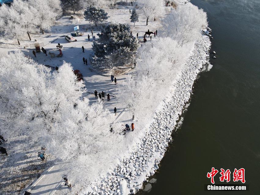 1月3日,素有“中国雾凇之都”之称的吉林市迎来2021年新年雾凇。松花江岸雾凇凝结于枝,繁茂纯净,当地“小雾凇岛”游客如织。苍雁 摄