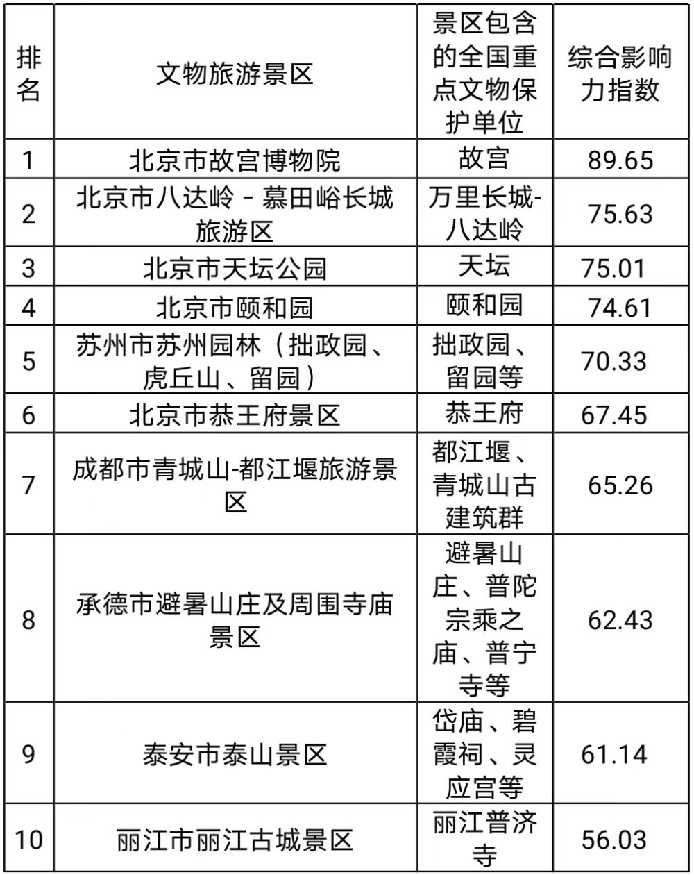 1、2021年度全国文物旅游景区综合影响力TOP10