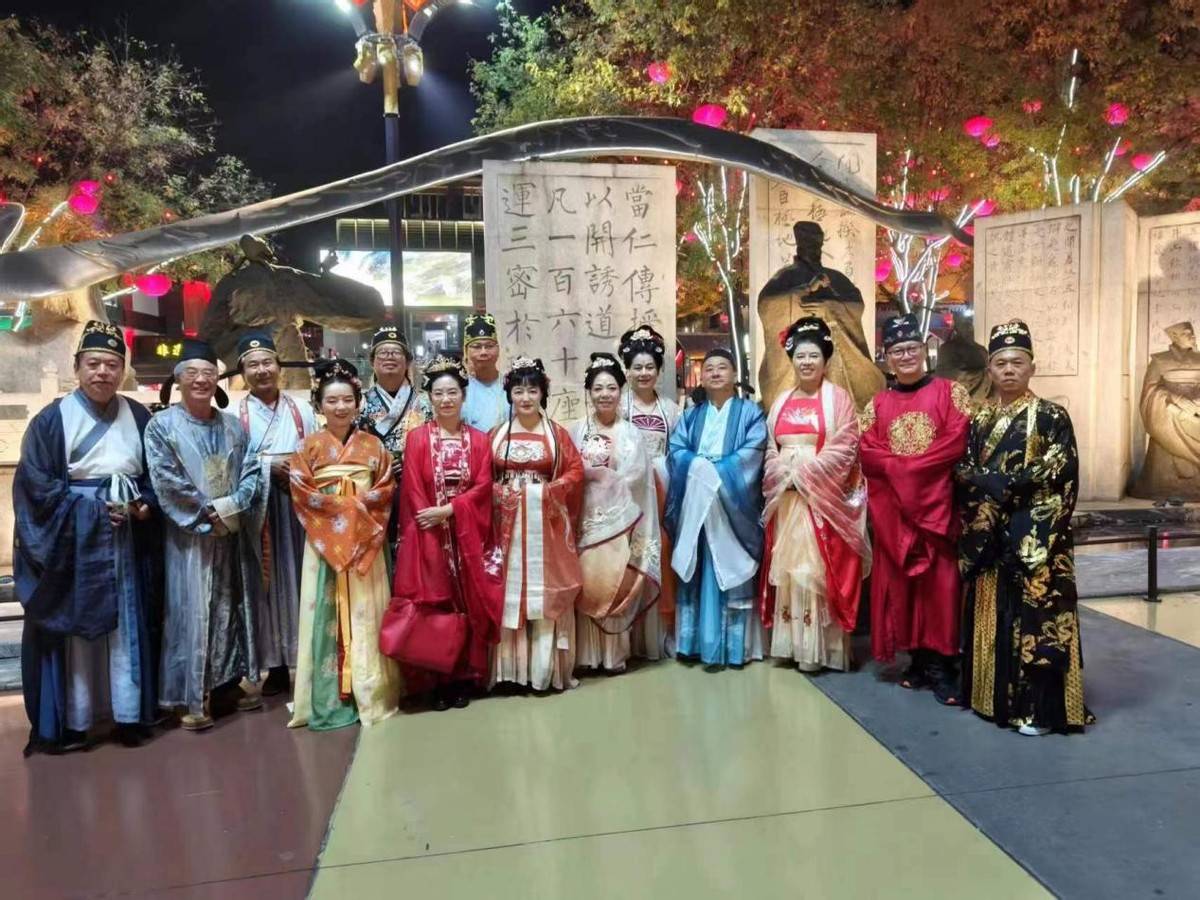 诗人着汉服游览大唐不夜城诗林