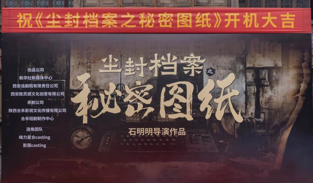 9月22日,由新华社新媒体中心、西安话剧院有限责任公司、西安致灵感文化创意有限公司联合出品的“反特+刑侦”题材系列短剧《尘封档案》第一部作品《尘封档案之秘密图纸》,在横店影视城正式开机拍摄。